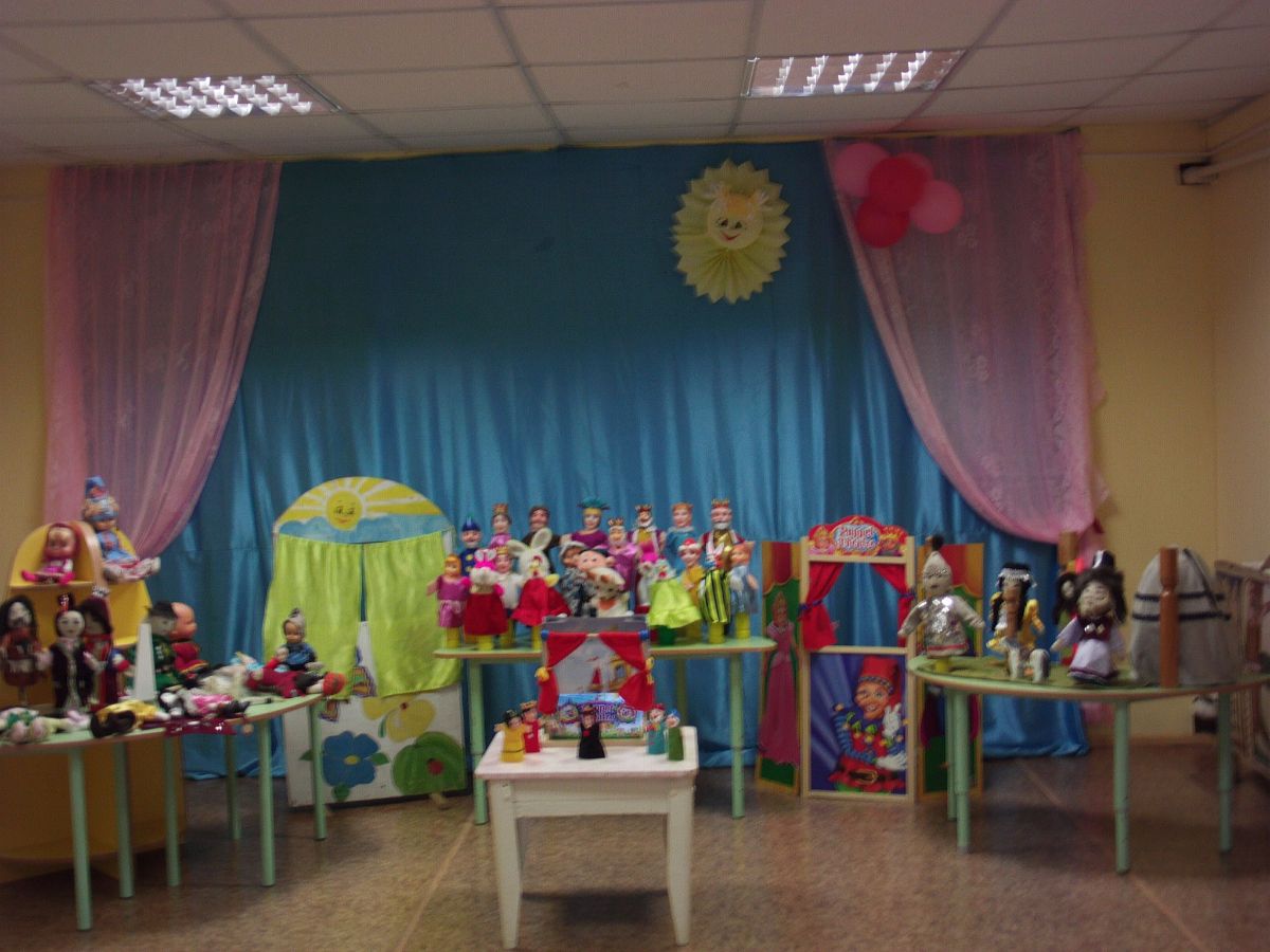 • Библиотека методической литературы, сборники нот • Шкаф для используемых пособий, игрушек, атрибутов и прочего материала • Музыкальный центр • Пианино • Разнообразные музыкальные инструменты для детей • Подборка аудио кассет с музыкальными произведениями • Различные виды театров • Ширма для кукольного театра • Детские взрослые костюмы • Детские и хохломские стулья |